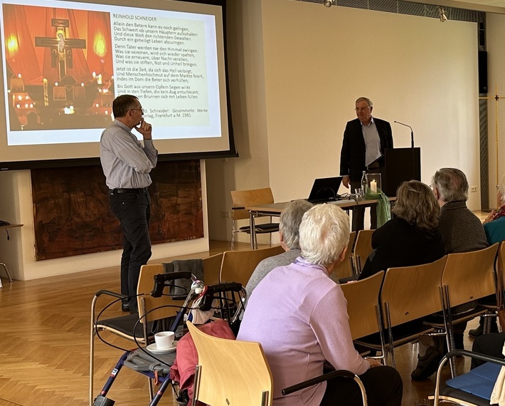 Nach Eröffnung mit dem Kanon "lobet und preiset ihr Völker den Herrn" und Begrüßung übergab unser Präses Dr. Matthias Leineweber das Mikrofon direkt an den diesjährigen Gast Prof. Dr. em. Wolfgang Weiß, welcher über das Thema „Bruderschaften als Ort der Laienfrömmigkeit vom Mittelalter bis zur Gegenwart“ referierte. Die Präsentation zum Vortrag finden Sie hier.